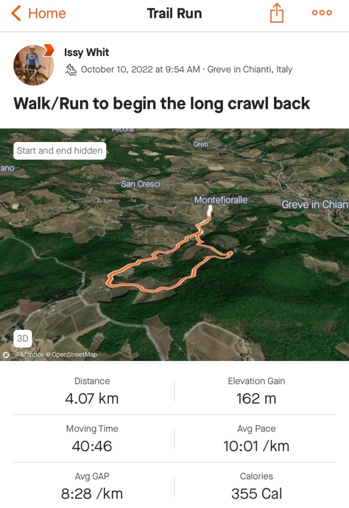 If I didn’t love running, why would I keep doing it when it was made even more difficult by the kilos of wine and pasta weight accumulated on a prolonged European holiday? Especially when I knew that the tiny efforts I was doing (and the ongoing consumption of said wine and pasta) were not going to make any headway into modifying that situation.