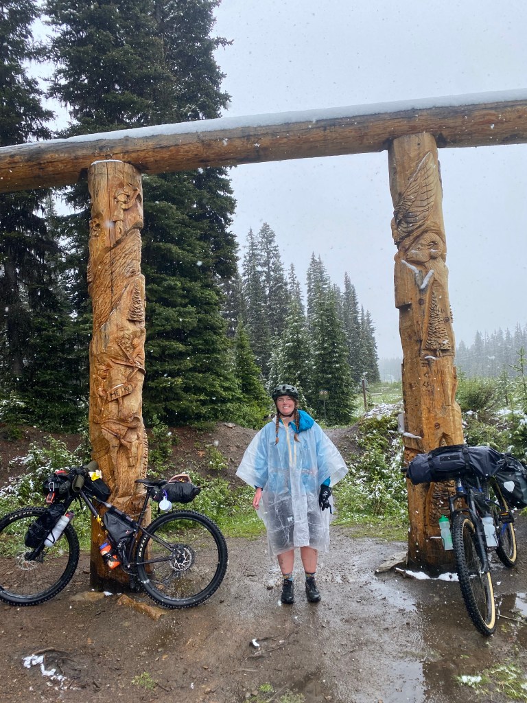 And that’s how I ended up riding for several days in hail, sleet and snow with only a dry pair of shorts to put on at the end of the day. Nothing quite like having to buy marigolds and plastic ponchos at the corner store before ascending Elk Pass in the bucketing snow, because you left your perfectly good cold weather gear at home. Deliberately!